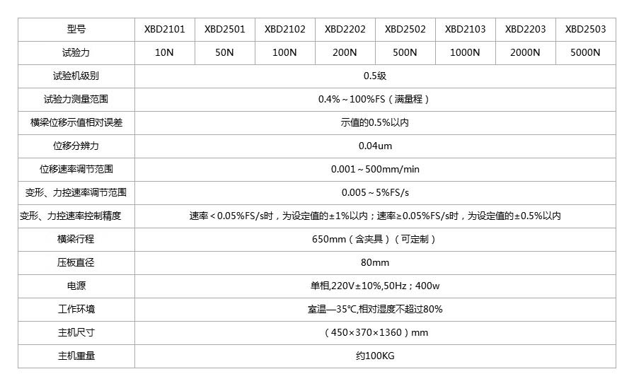 二維碼 設(shè)備名稱:微機(jī)控制電子萬能試驗機(jī)產(chǎn)品型號:XBD2101、XBD2501、XBD2102、XBD2202、XBD2502、XBD2103、XBD2203、XBD2503設(shè)備主要功能:本機(jī)用于金屬及非金屬(含復(fù)合材料)膠粘劑、膠粘帶、不干膠、醫(yī)用粘劑、保護(hù)膜、離型紙、復(fù)合膜、食品塑料袋包裝、日用化妝品塑料包裝、人造革、編織袋、薄膜、紙張的拉伸、壓縮、彎曲、剪切、剝離、撕裂、保載、松弛、往復(fù)等項的靜力學(xué)性能測試分析研究,可求出力、抗拉強(qiáng)度、彎曲強(qiáng)度、壓縮強(qiáng)度、彈性模量、斷裂延伸率、屈服強(qiáng)度等參數(shù)。并...">